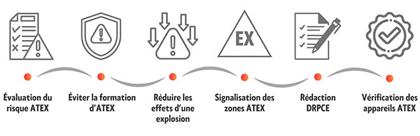 Pour prévenir le risque ATEX, l'employeur doit mettre en place une démarche de prévention qui comprend :